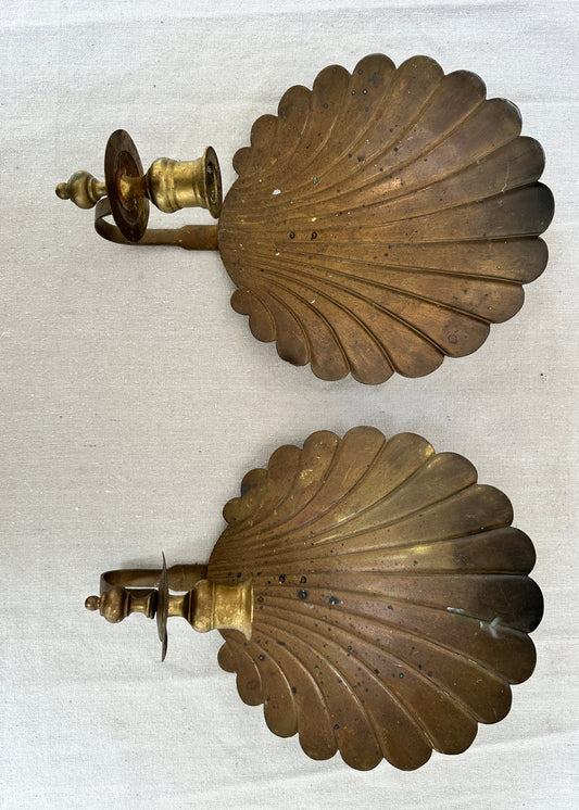 Pair of 1950s Brass Scallop Shell Candle Sconces