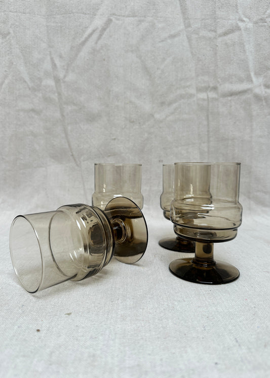 Willem Heesen for Royal Leerdam – Smoked Glass Wine Glasses, Set of 4 (c.1970s)