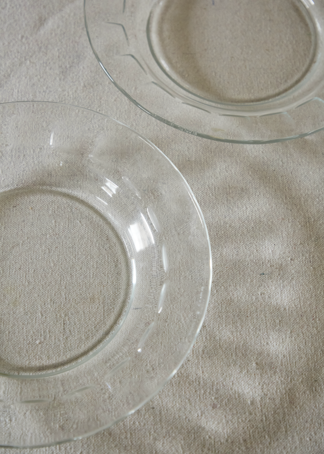 Crafted from durable Arcoroc glass, they showcase a beautiful thumbprint pattern that adds texture and elegance to any table setting. Whether you're hosting a dinner party or enjoying everyday meals, these plates make a chic and functional addition to your collection. Perfect for those who love retro aesthetics with a practical touch.