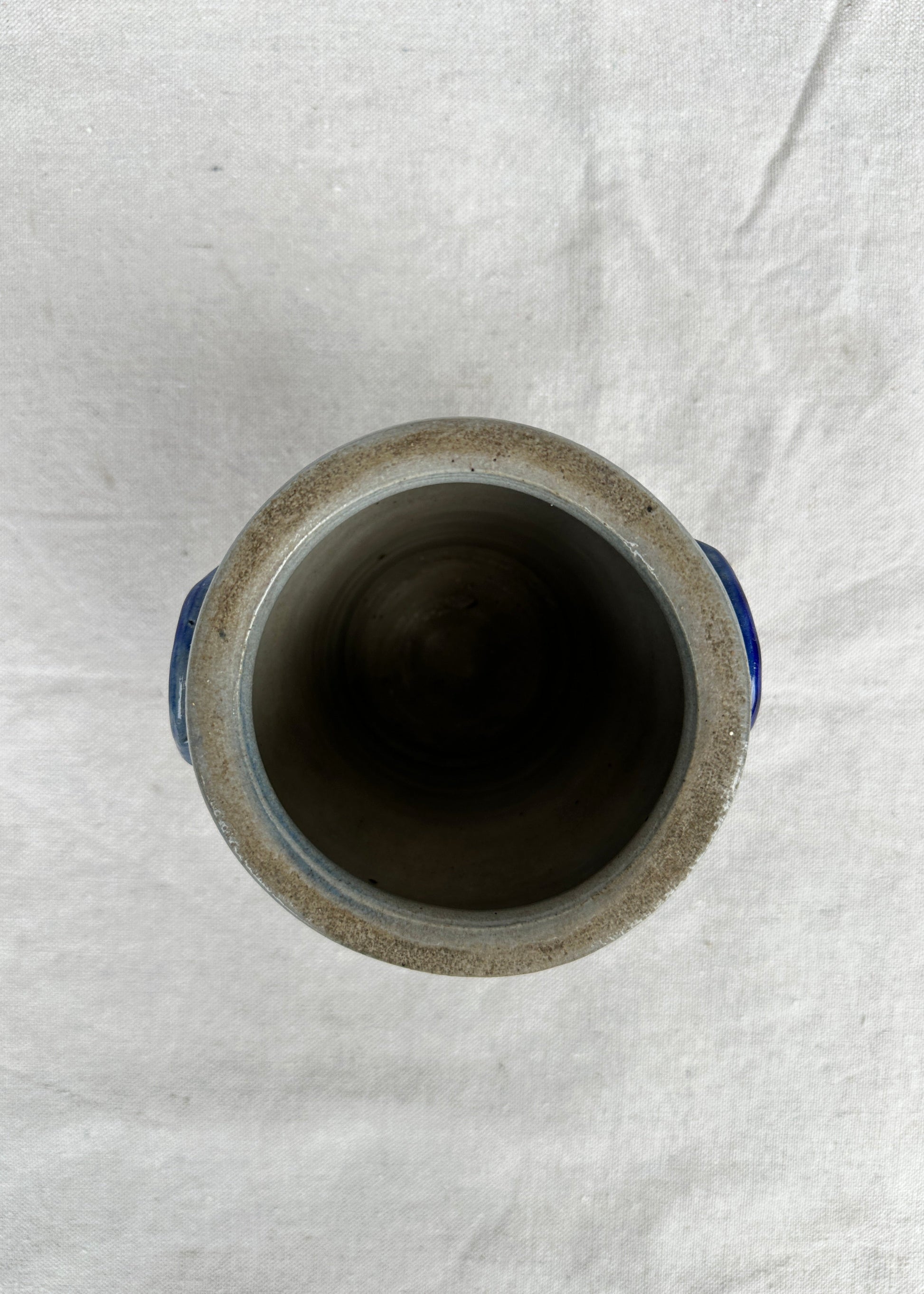 Each jar bears its own character, with variations in color, patina, and timeworn surface that speak to years of use. While glazed interiors may hold water, we recommend placing a discreet liner or glass insert when displaying fresh stems. This piece is in perfect condition.