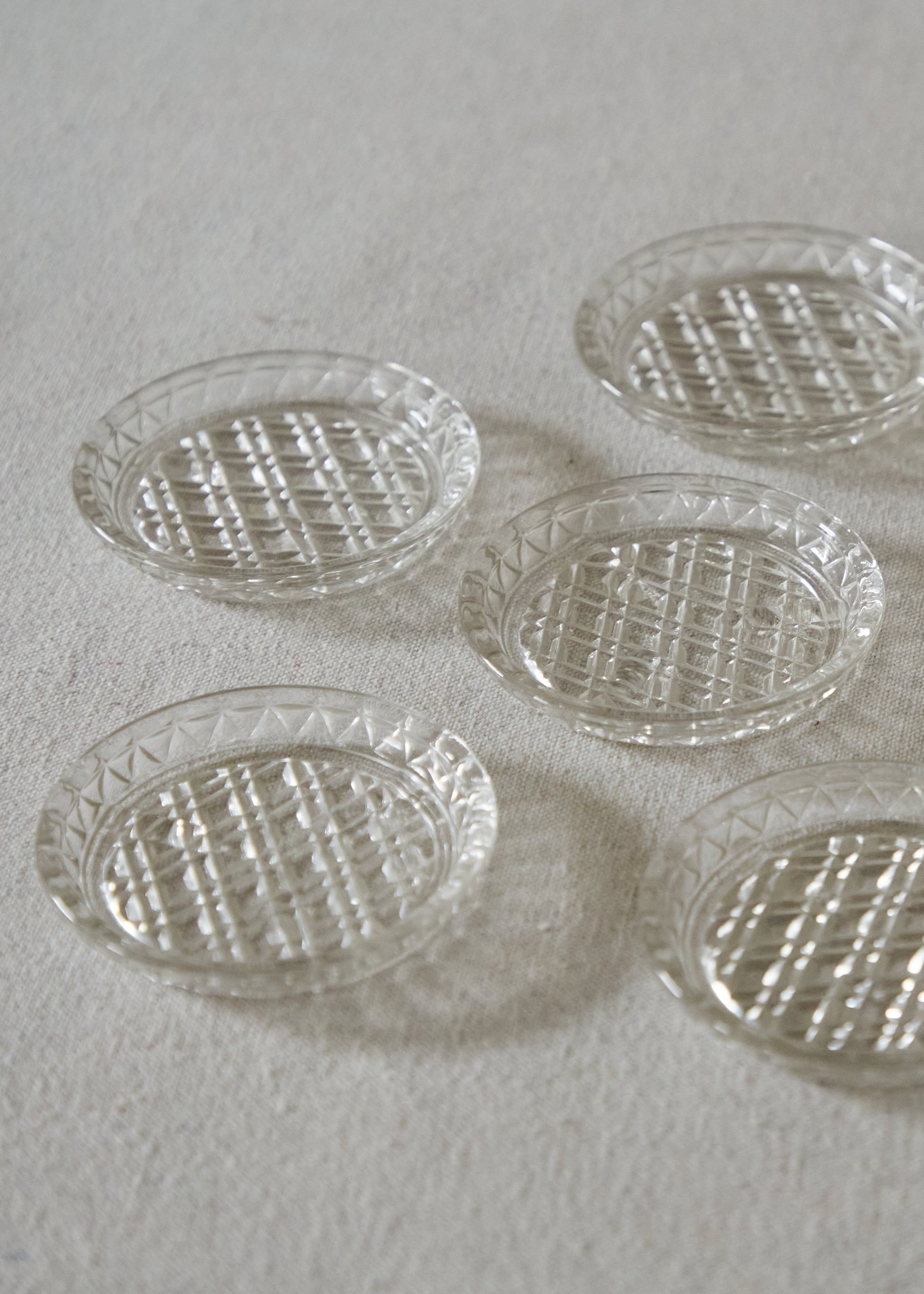 Elevate your table setting with this exquisite set of 6 vintage glass coasters, sourced from Belgium. These coasters are more than just practical table protectors—they're decorative accents that bring timeless charm and sophistication to your dining or entertaining experience.