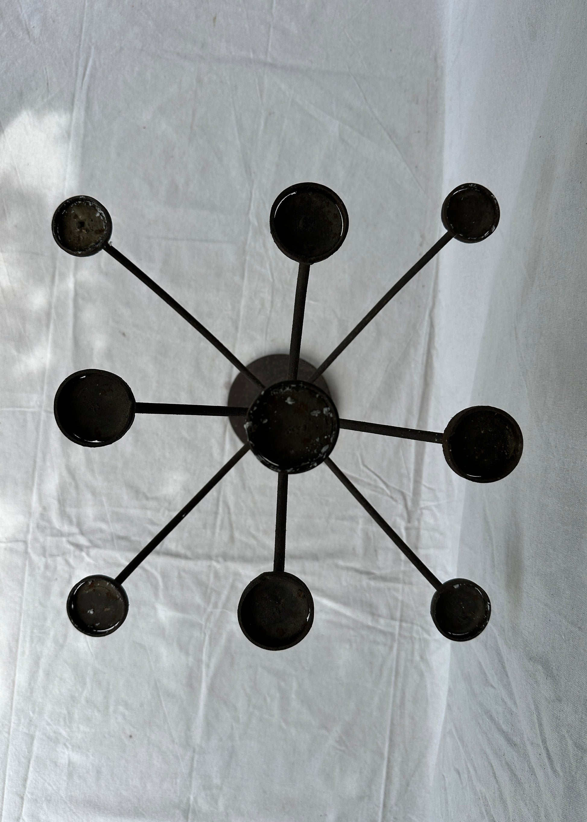 Make a bold statement with this rare vintage floor candelabra, a striking centerpiece for any room. Featuring 9 elegantly curved arms for candles, this candelabra combines vintage charm with sculptural sophistication, perfect for ambient lighting, special occasions, or as a decorative accent. Its black finish adds a timeless, versatile touch that complements both MCM and rustic interiors.