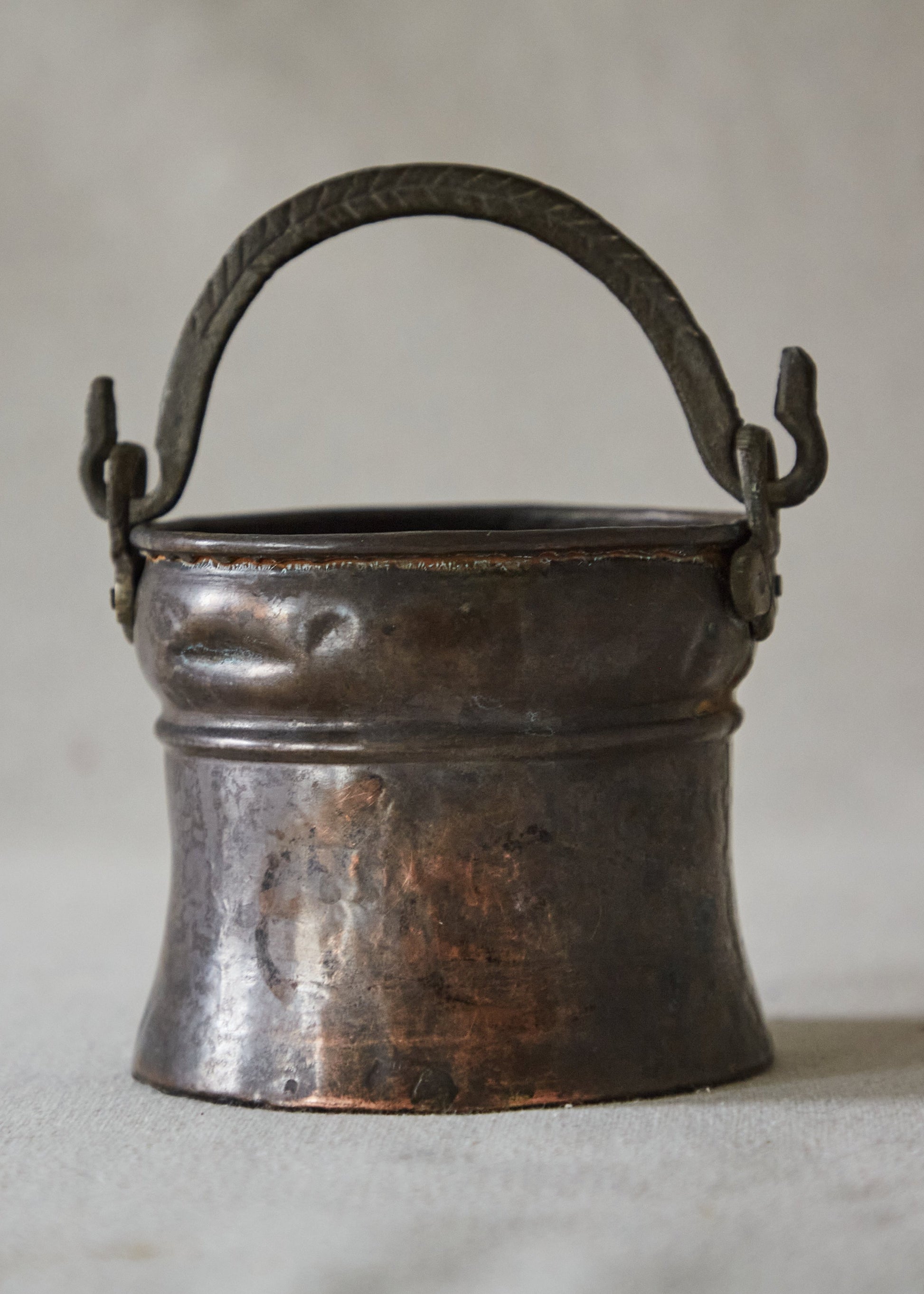 This original antique hand-forged copper kettle pot is a versatile piece that radiates rustic French charm. Featuring a classic swing handle, it’s perfect for showcasing dried flowers or a small pot plant. Its warm copper tones and timeless design make it an elegant addition to any room, whether displayed on a shelf, table, or windowsill. A beautiful way to bring a touch of French countryside style into your home.