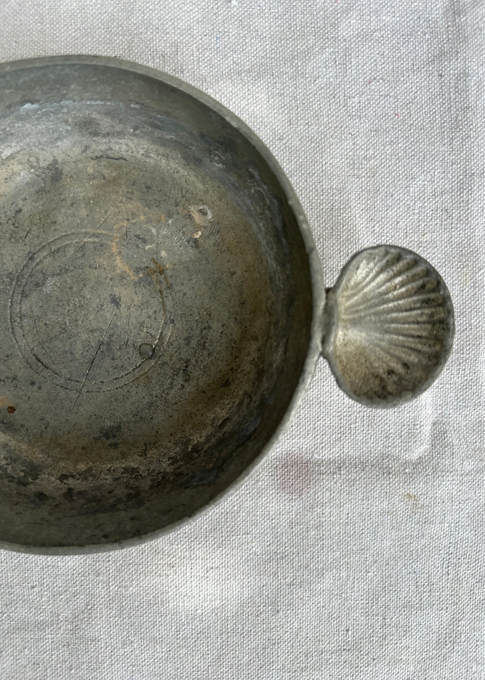 Vintage Pewter Scoop dish with shell handle with 'Les Etains du Grand Duc' stamp.